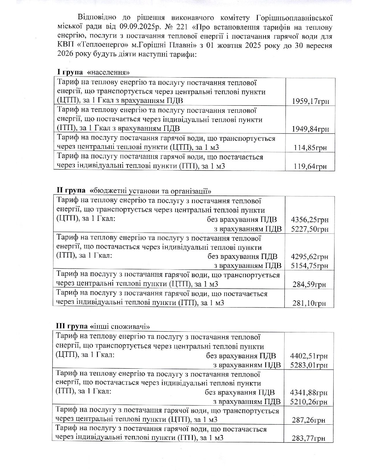 КВП "Теплоенерго" м.Горішні Плавні" інформує