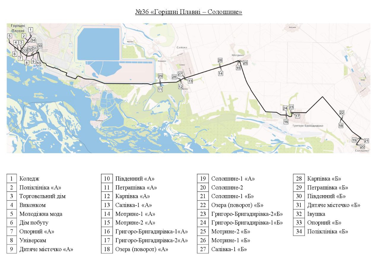 Виконавчий комітет Горішньоплавнівської міської ради ухвалив рішення: з 17 листопада 2025 року по 16 лютого 2026 року запровадити додаткові рейси на маршруті №36 «Горішні Плавні – Солошине» у понеділок, середу та п’ятницю.